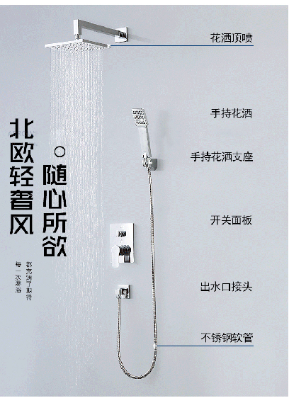 ZLY-卫浴五金暗藏豪华花洒纯铜主体+银粉管