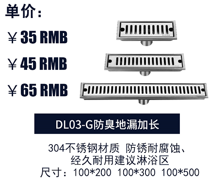 ZLY-卫浴五金加长地漏(304不锈钢)